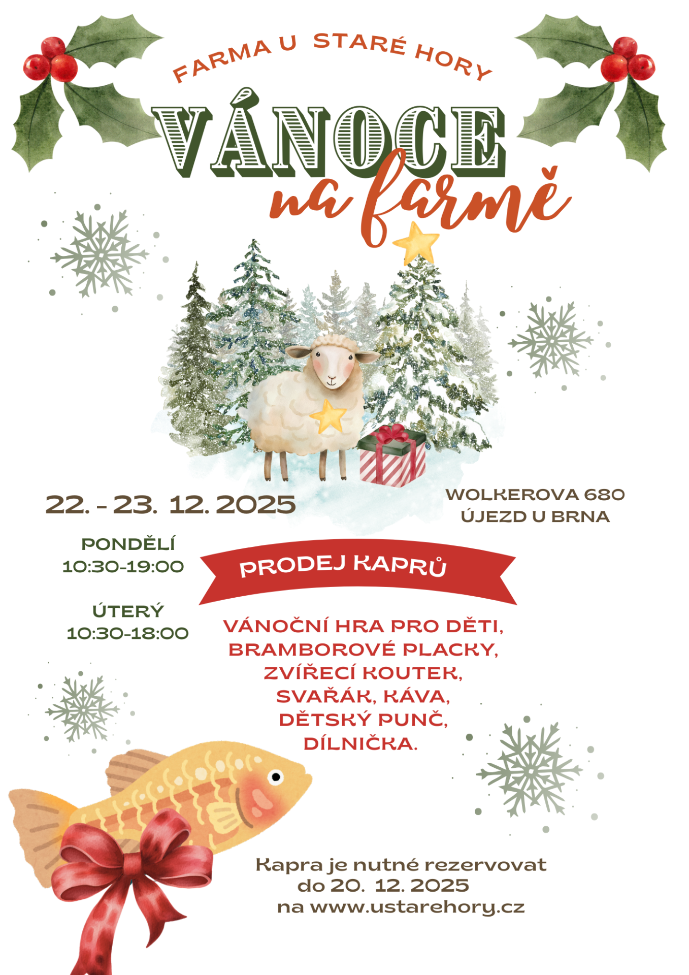 Zveme vás na naše tradiční vánoční naladění se na farmě! Stejně jako každý rok pro vás chystáme spoustu krásných zážitků.